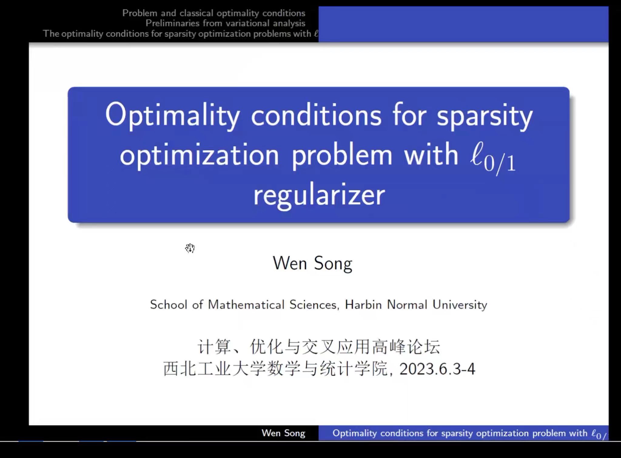 2023年6月2日至6月5日,金沙娱乐场-金沙娱乐场app “计算、优化与交叉应用高峰论坛”在友谊校区东会议室成功举办。此次研讨会共有来自全国40余所高校和科研院所的近200名专家通过线下和线上的方式参加。
