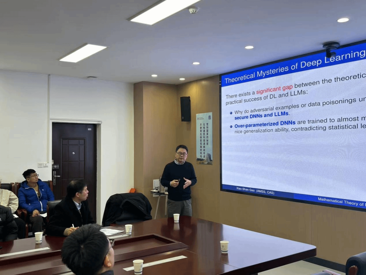 2024年12月16日,金沙娱乐场 第20期“九章学术讲堂”成功举办。本次讲堂邀请中国科学院数学与系统科学研究院高小山研究员为金沙娱乐场 师生带来题为《Mathematical Theory of Deep Learning: Security and Generalization》的精彩学术报告。金沙娱乐场 院长聂玉峰教授等20余位师生参加本次报告会,报告会由金沙娱乐场 副院长徐根玖教授主持。
