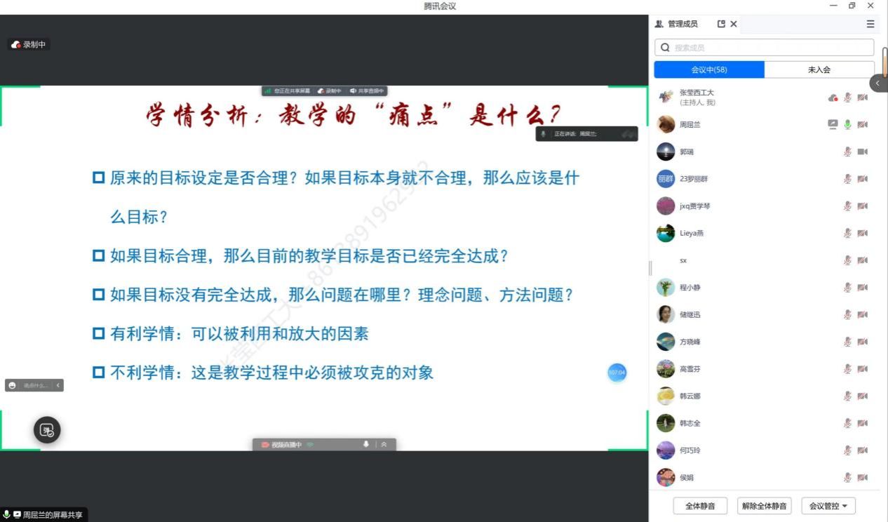 为了加强兄弟高校微积分课程教学间的沟通与联系,促进多学科交叉融合与教学经验分享,提高我校微积分任课教师教学水平,进一步提升我校人才培养质量。2023年6月29号微积分课程教学团队以线上线下相结合的形式举行了本学年的课程教学研讨会,暨基层教学组织示范点系列交流活动第三期和第四期。本次会议通过腾讯会议和雨课堂双平台同步直播,共百余位教师线上线下参会。
