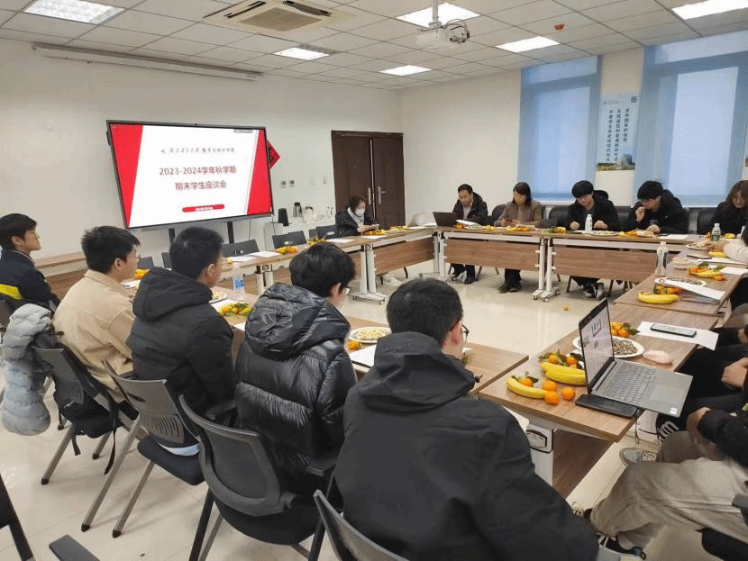 2024年1月16日,金沙娱乐场 2023-2024学年秋学期期末学生座谈会在启翔楼357会议室举行。金沙娱乐场 党委书记王莉、教学副院长郭千桥、本科四个年级的学生代表参加了本次会议。