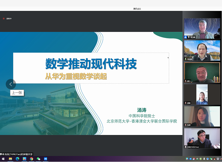 2022年1月14日金沙娱乐场 举办了第三期线上启翔数苑数学讲坛。中国科学院院士、北京师范大学—香港浸会大学联合国际学院校长汤涛应邀为金沙娱乐场 师生带来一场主题为《数学推动现代科技——从华为重视数学谈起》的精彩报告。我校副校长杨益新、数学统计学院院长聂玉峰、党委副书记张莹、副院长都琳、副院长徐根玖、教育实验学院副院长蔡力、数学统计学院院长助理刘晓刚、实验教学中心主任佘红伟、青年教师代表、2020级、2021级本科生等500余位师生在线参加了报告会。本次报告会由副校长杨益新主持。
