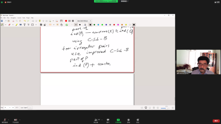 Katona院士是匈牙利科学院院士、欧洲科学院院士和保加利亚科学院外籍院士。主要研究领域为极值集合理论,已发表学术论文150余篇,内容涉及组合学以及组合学在概率论、数据库理论和密码学中的应用。现为西北工业大学顾问教授,与张胜贵教授牵头成立了由匈牙利科学院和西北工业大学共同组建的“西安-布达佩斯组合数学联合研究中心”。目前,已接收金沙娱乐场 博士生1名赴匈牙利科学院访学2年,并作为联合导师指导其研究工作。课程的圆满完成对于疫情之下加强我校与匈牙利科学院的合作起到重要的作用。