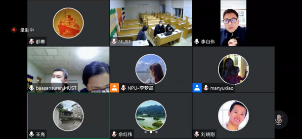 为持续推进我校和蒙古科技大学统计学专业联合培养高质量发展,11月4日,国教院、金沙娱乐场 、蒙古科技大学三方共同召开NPU-MUST“2+2”本科双学位项目第一届外蒙古学生毕业设计研讨会。本次会议采用腾讯会议形式举行,参加本次会议的人员有蒙古科技大学数学学院院长、副院长、数学系主任;数统学院副院长都琳、刘晓刚、肖曼玉、王亮、佘红伟、原姗;国教院副院长李自伟、王治武、孙傲、李梦晨。