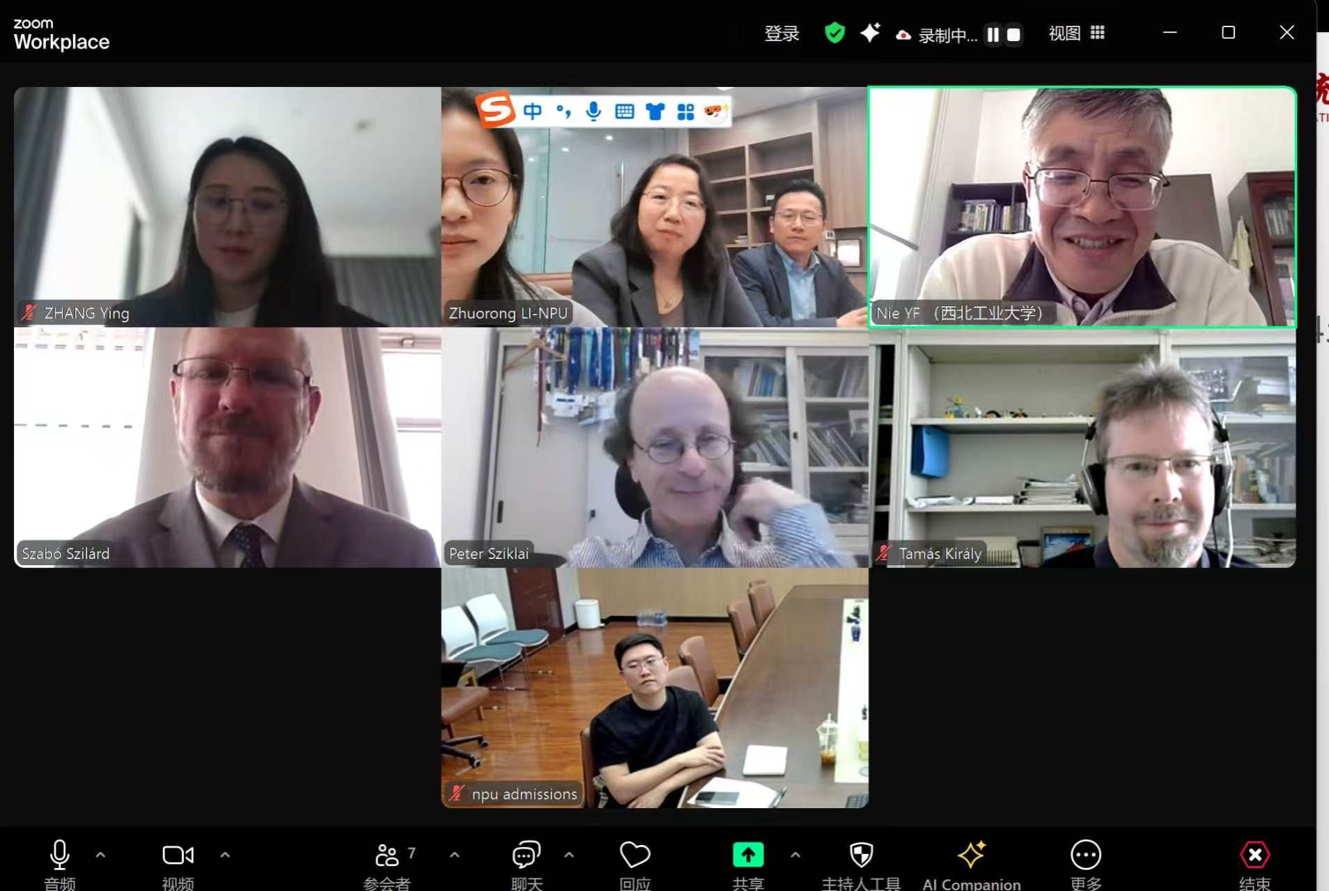 为提升此次出访交流效率,保障实地洽谈取得实效,4月9日,学院与罗兰大学举行首轮线上洽谈会。罗兰大学理学院数学研究所所长Péter Sziklai教授、数学研究所分管教学副所长Tamás Király、几何系主任Szilárd Szabó副教授参会;我校国际合作处(港澳台办公室)涉外办学与联盟科科长张宇老师,学院聂玉峰院长、张莹副书记、院长助理刘晓刚教授、肖曼玉主任及外事秘书李卓榕老师参会。会上,双方分别介绍了各自办学历史、人才培养体系、师资队伍建设与科学研究方向,重点围绕中外合作办学项目的专业设置、培养模式、培养方案及申报材料等核心内容开展初步研讨,并就4月13日的实地出访行程与交流计划进行细致对接,为后续深入交流奠定坚实基础。