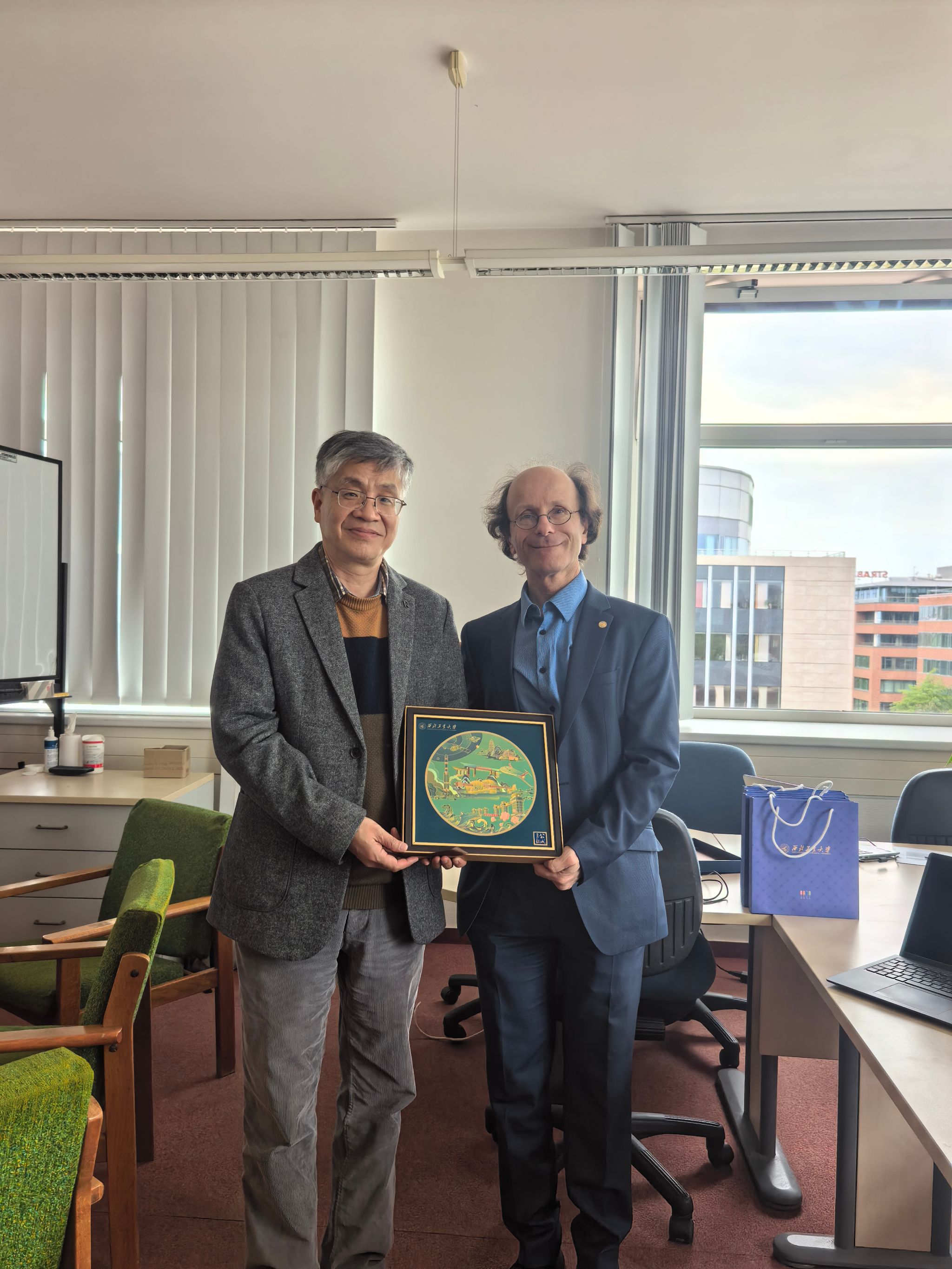 4月14日,代表团再次前往罗兰大学理学院数学研究所继续洽谈。聂玉峰院长代表学院向Péter Sziklai教授赠送镌刻有我校校名的纪念圆盘,寄托了两校长久合作、携手共进的美好愿景。双方重点围绕课程体系设置、培养方案细化、学分互认与转换等内容进行深度交流,并就后续项目申报、材料对接等工作明确时间节点与责任分工,稳步推进合作落地。
