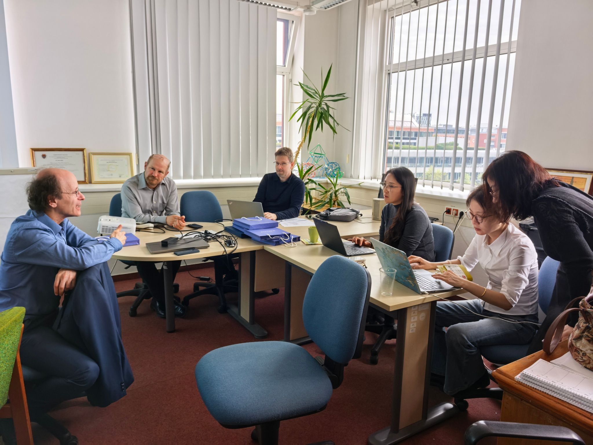 4月13日,代表团抵达罗兰大学理学院数学研究所,与匈方代表展开深入交流。匈方所长 Péter Sziklai 教授、副所长 Tamás Király 教授、Szilárd Szabó 副教授及理学院分管教学副院长 Viktor Müller 教授出席会议。双方就中外合作办学项目的专业设置、培养模式、培养方案制定、申报材料筹备等关键问题充分交换意见,逐项梳理合作细节,并商定次日围绕课程体系开展专题研讨。