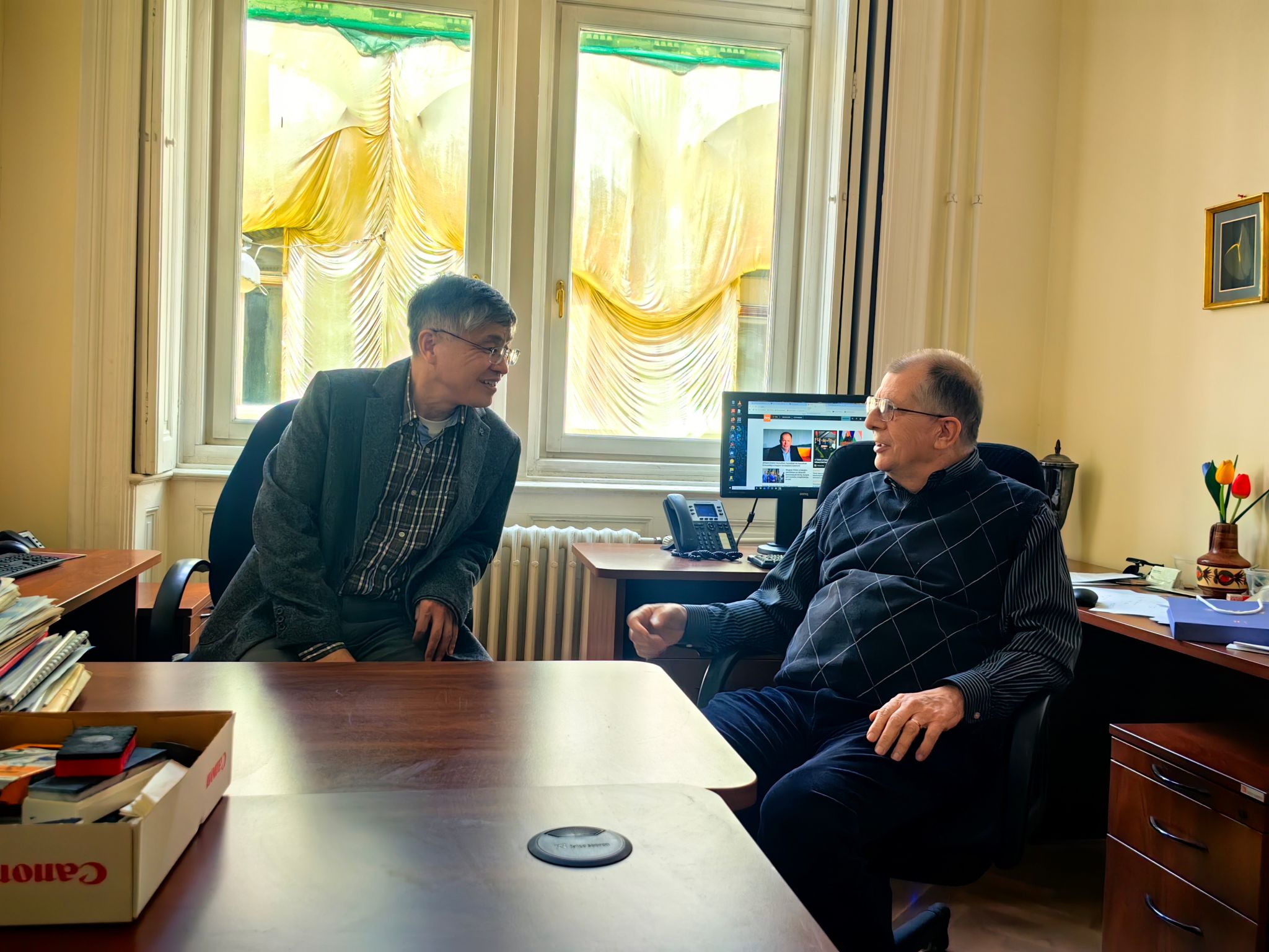 4月16日,代表团访问阿尔弗雷德・雷尼数学研究所,与Ervin Győri教授举行会谈。聂玉峰院长表示,雷尼数学研究所与金沙娱乐场 图论研究团队长期保持密切科研合作与学术往来,合作基础扎实、成果显著。希望以此次访问为新契机,进一步深化团队联合攻关、青年学者互派、学术资源共享与高水平论文联合发表,同时依托雷尼数学研究所的人才资源优势,搭建海外引才桥梁,吸引研究所优秀青年学者来校,持续提升两校在相关研究领域的国际学术影响力。