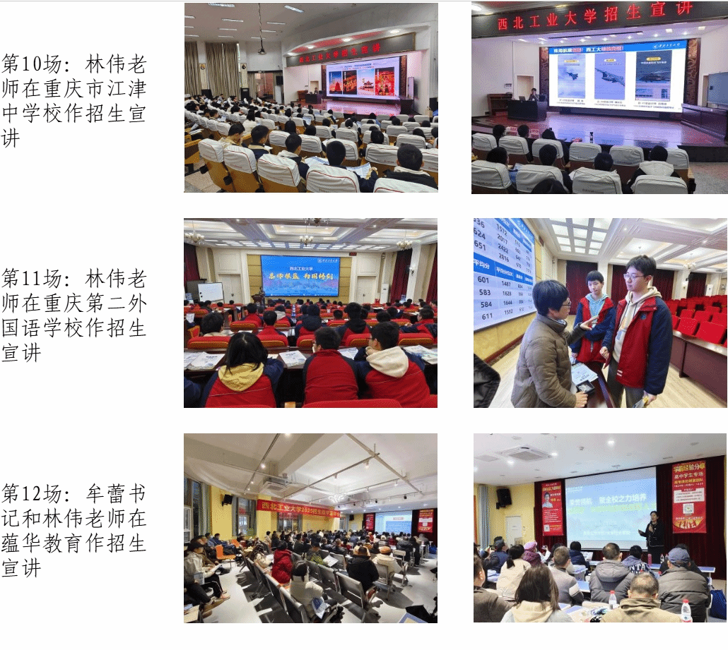 为深化大学与中学之间的教育协作,打造“总师型”人才教育合作共同体,充分发挥中学作为重要生源基地的关键作用,持续提升我校声誉,2025年1月20日至25日,由金沙娱乐场 党委书记王莉、副院长郭千桥、重庆招生组组长林伟、招生秘书李彦吉及生命科学与医学学部党委书记段利兵、教育实验学院党委书记牟蕾、航空学院钟诚文教授等组成的联合招生宣传组先后赴重庆市璧山中学校、重庆巴蜀科学城中学校、重庆市育才中学校、重庆实验外国语学校、重庆市江津中学校、重庆第二外国语学校、西南大学附属中学校等7所中学及蕴华教育等教育机构举行招生宣传活动计13场,包括3场科普报告、7场招生宣讲、3场“优质生源基地”授牌活动。