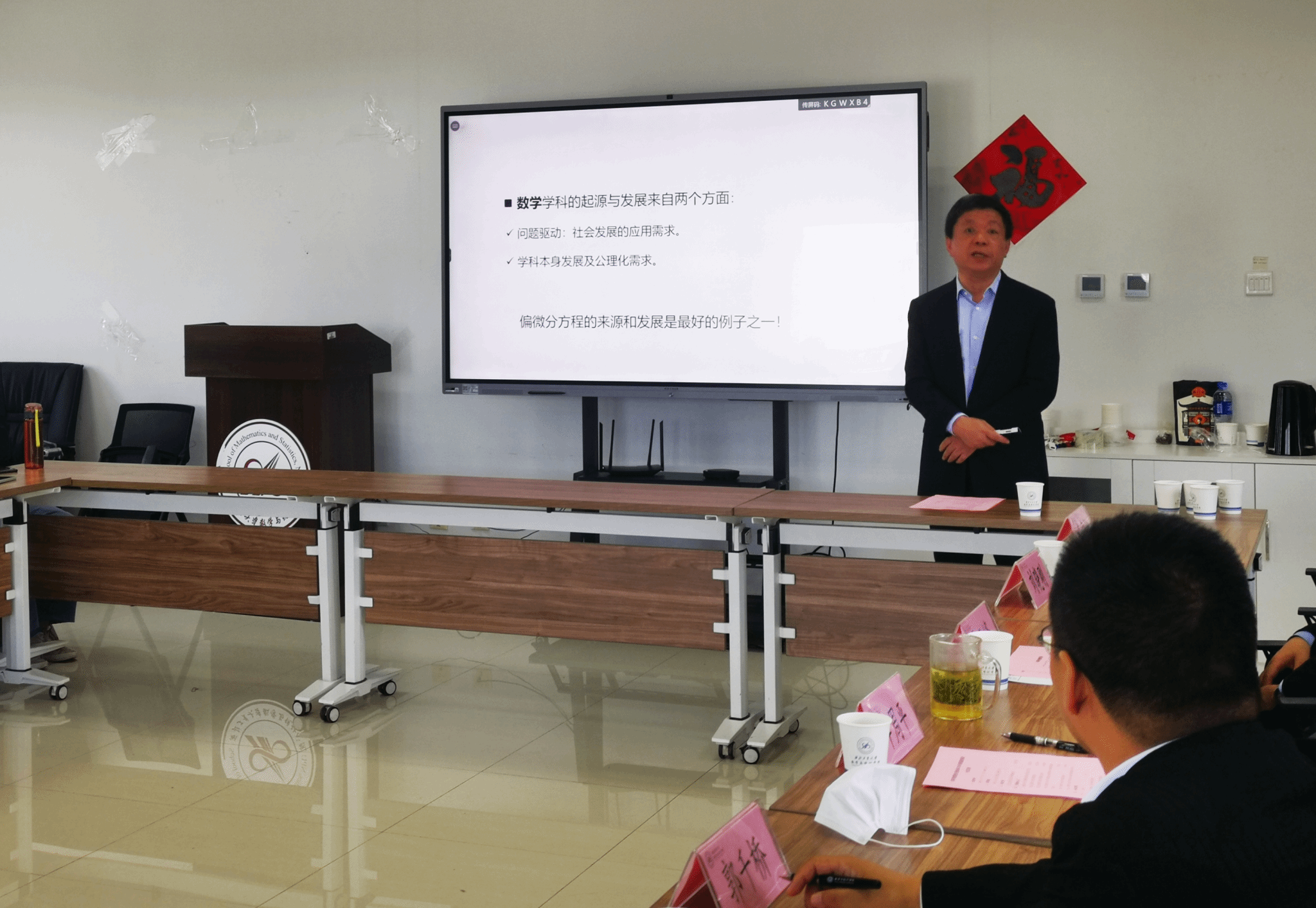 随后郭千桥副院长以《肩负时代使命,厚植数学根基》为题向在场师生介绍了数学类强基计划的基本情况,介绍了强基计划的培养优势和取得的成绩。2020级强基班班长孔维骏进行班级风采展示。