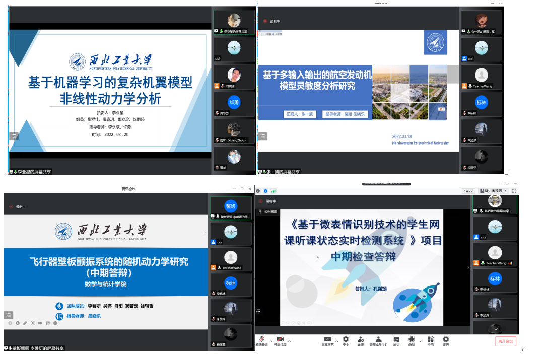 根据《西北工业大学大学生创新创业训练计划管理办法》(办转字〔2020〕9号)及《关于做好2021年大学生创新创业训练计划——创新训练项目中期检查的通知》的相关规定,为加强过程管理,及时了解项目进展及存在的问题,确保项目顺利进行与结题,2022年3月20日下午,金沙娱乐场 在线上腾讯会议组织召开2021年大创项目中期检查评审会。学院邀请王力工教授、肖华勇教授、周旷副教授、刘晓刚副教授、周丙常副教授、袁占斌副教授等六位老师担任评审专家,对本院在研的31项大创项目进行了中期检查评审。