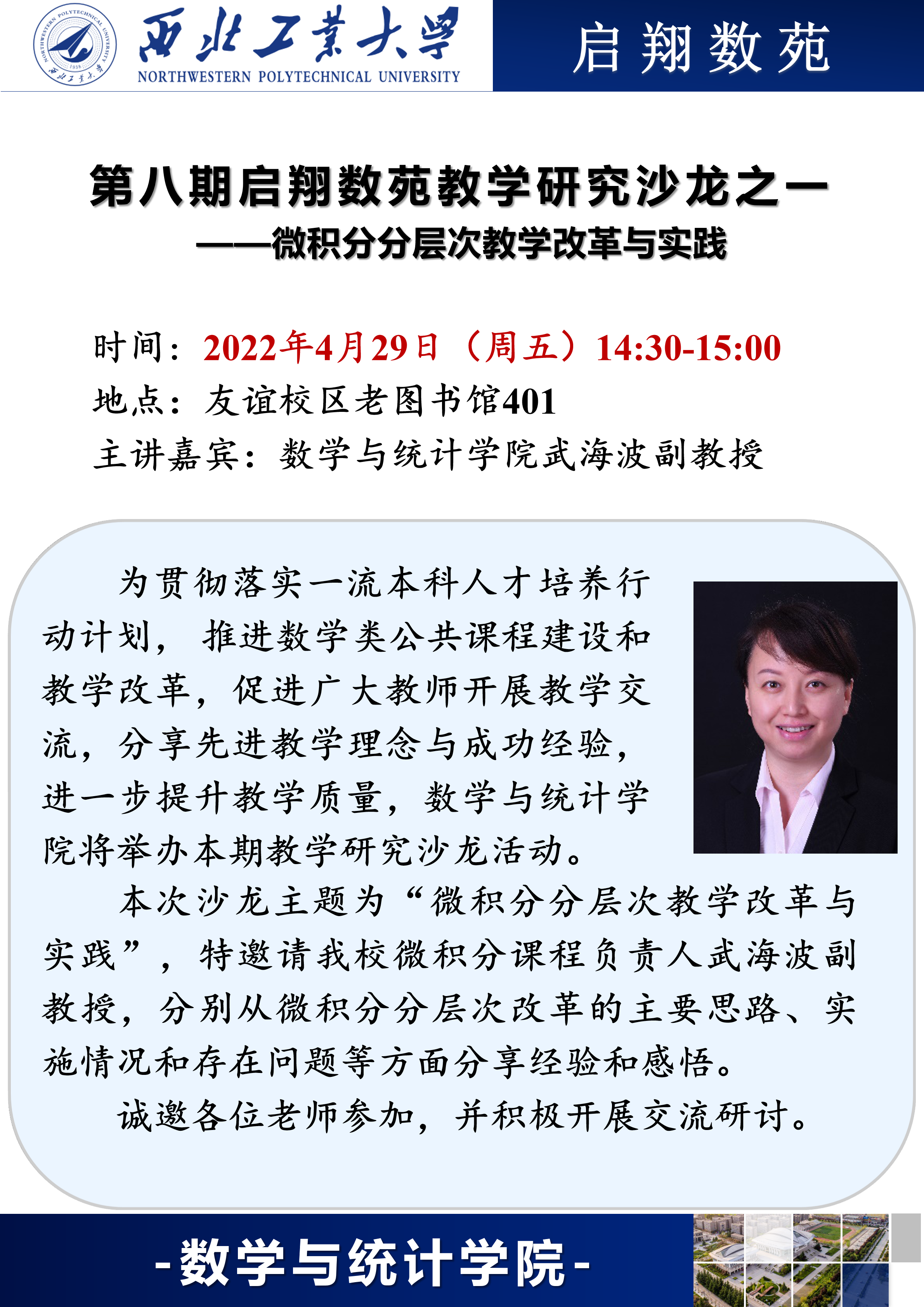 为贯彻落实一流本科人才培养行动计划,推进数学类公共课程建设和教学改革,促进广大教师开展教学交流,分享先进教学理念与成功经验,进一步提升教学质量,金沙娱乐场 将举办第八期教学研究沙龙活动。