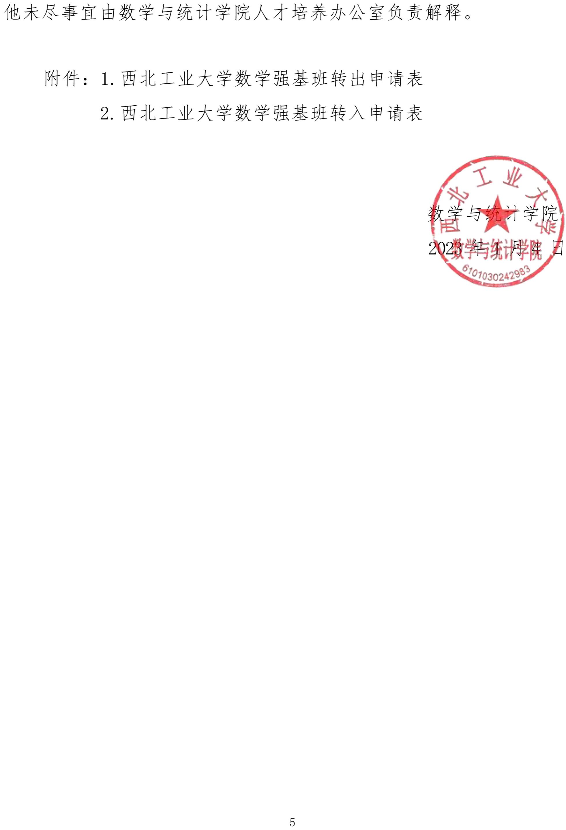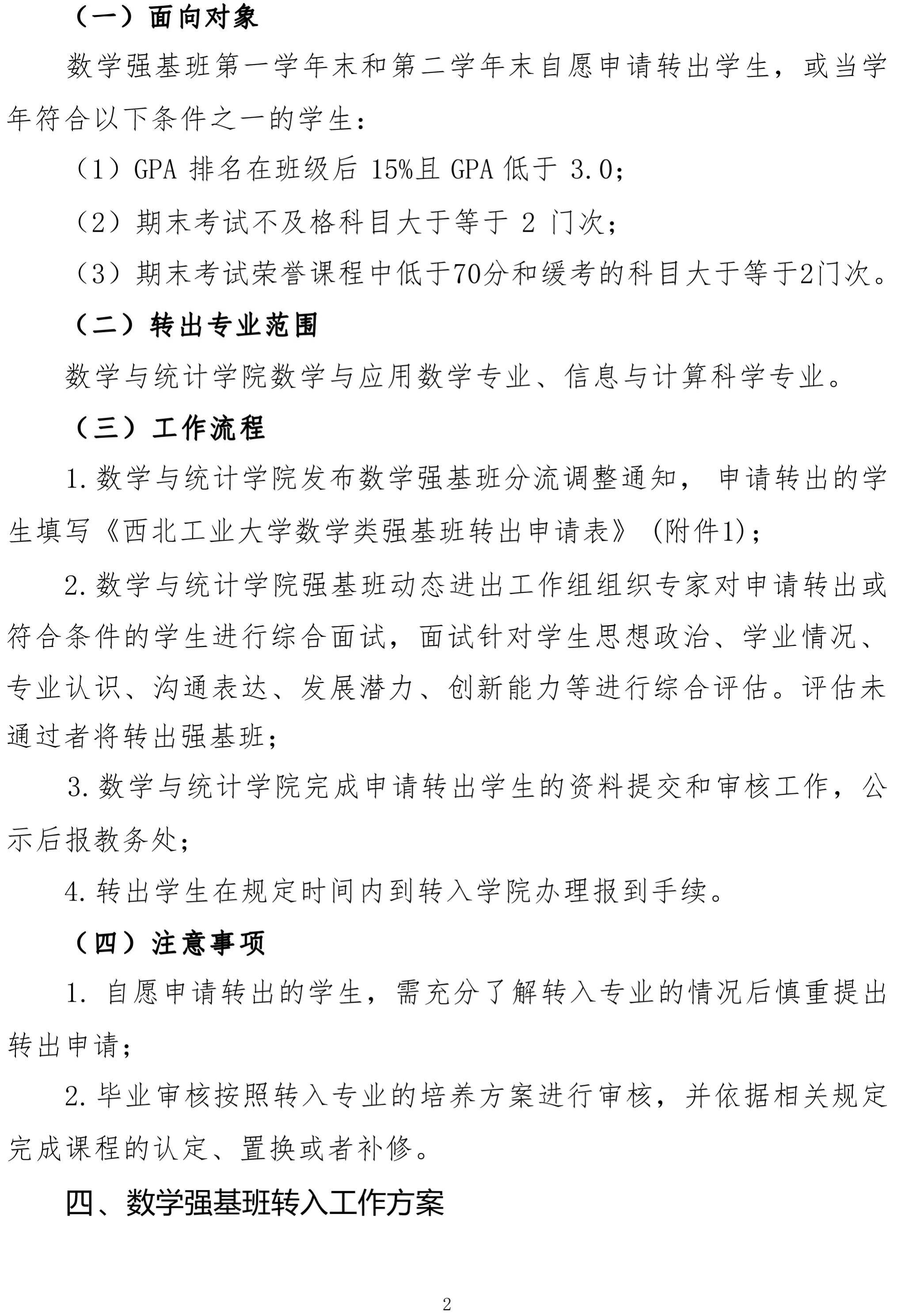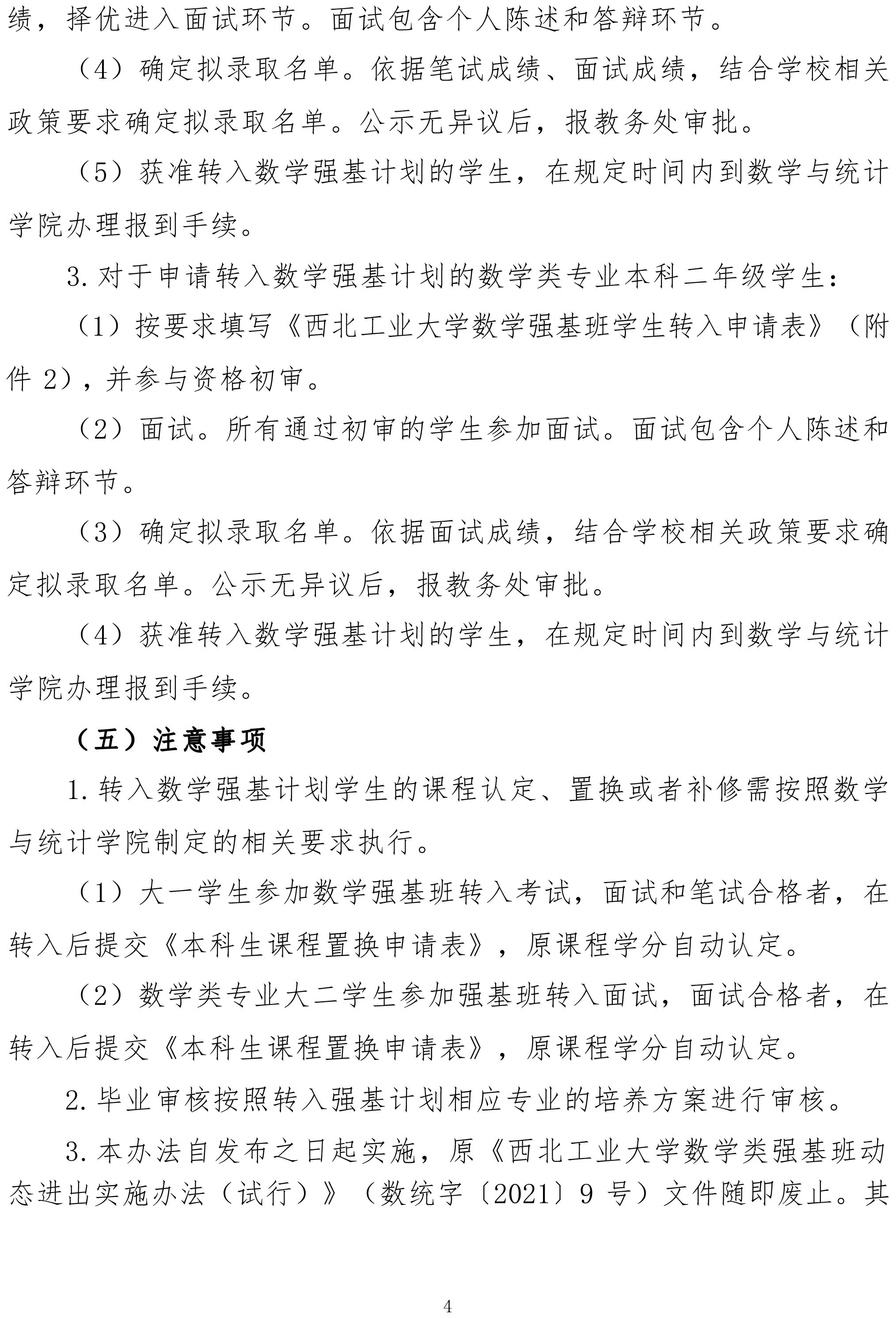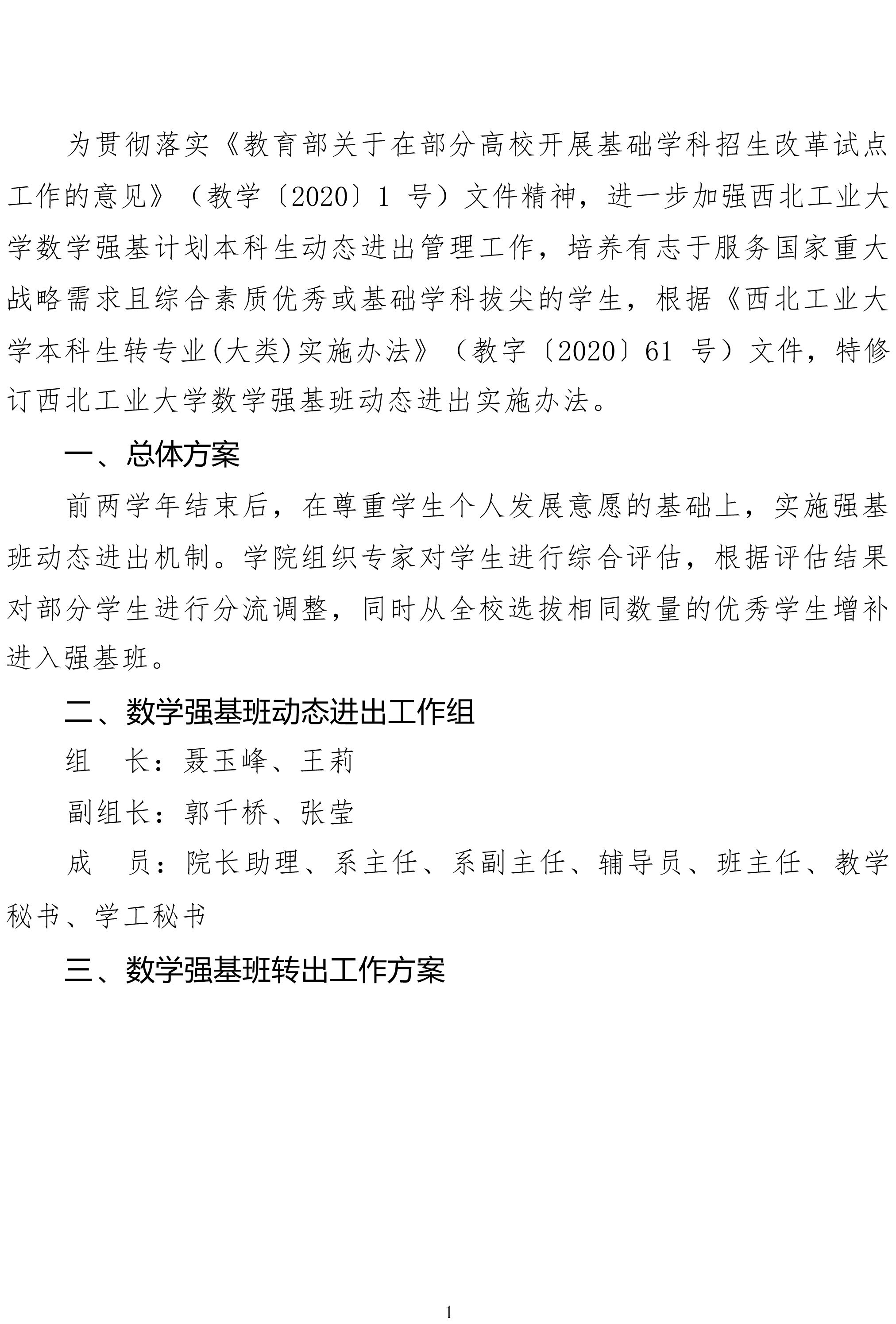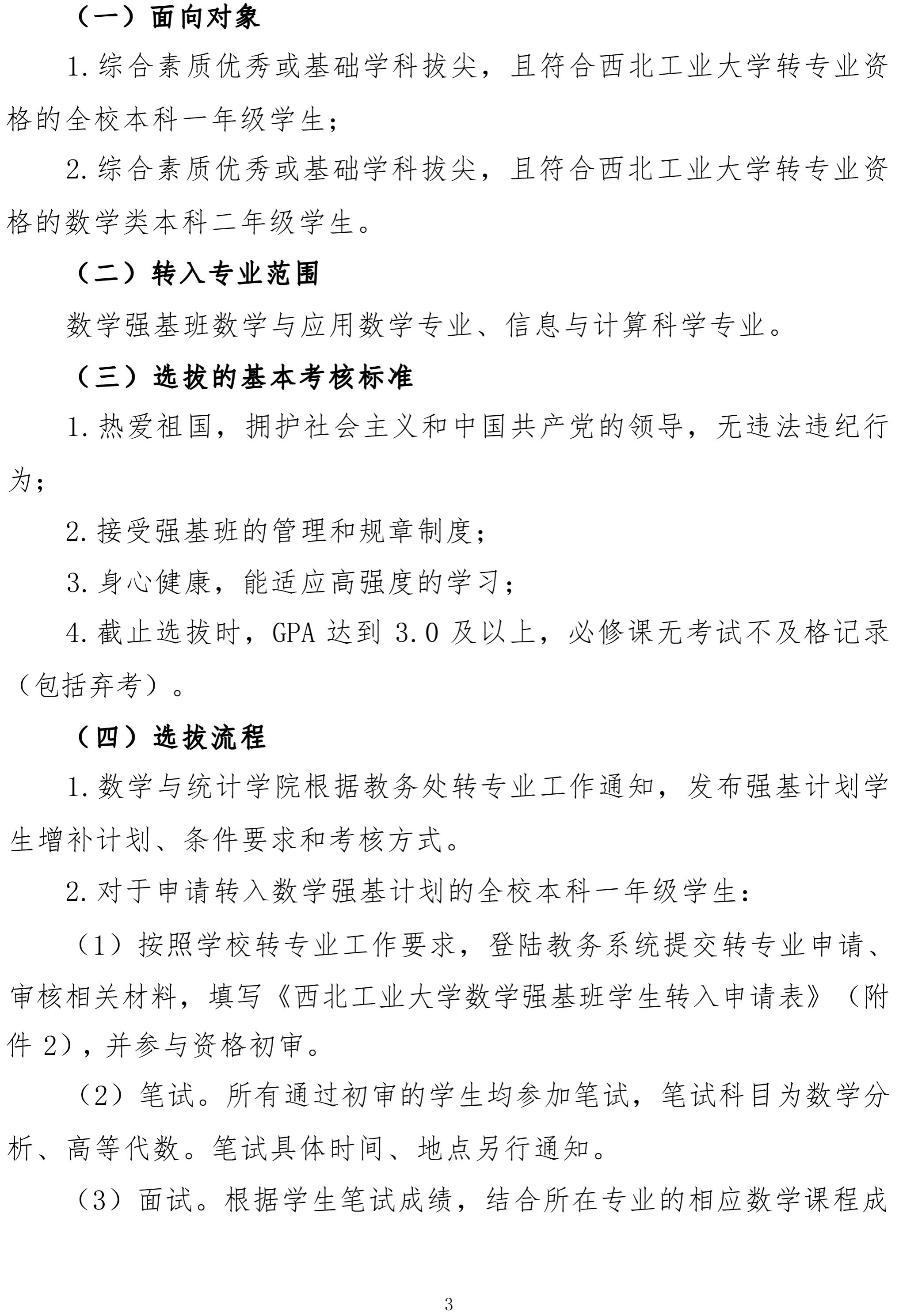 西北工业大学数学强基班动态进出实施办法通知(试行)