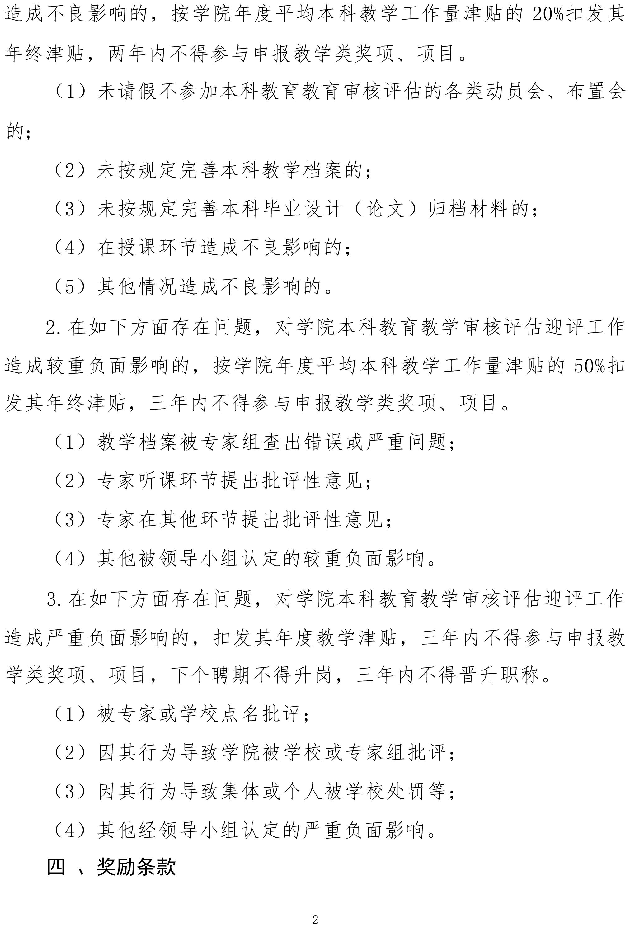 金沙娱乐场 2023 年本科教育教学审核评估奖惩实施办法