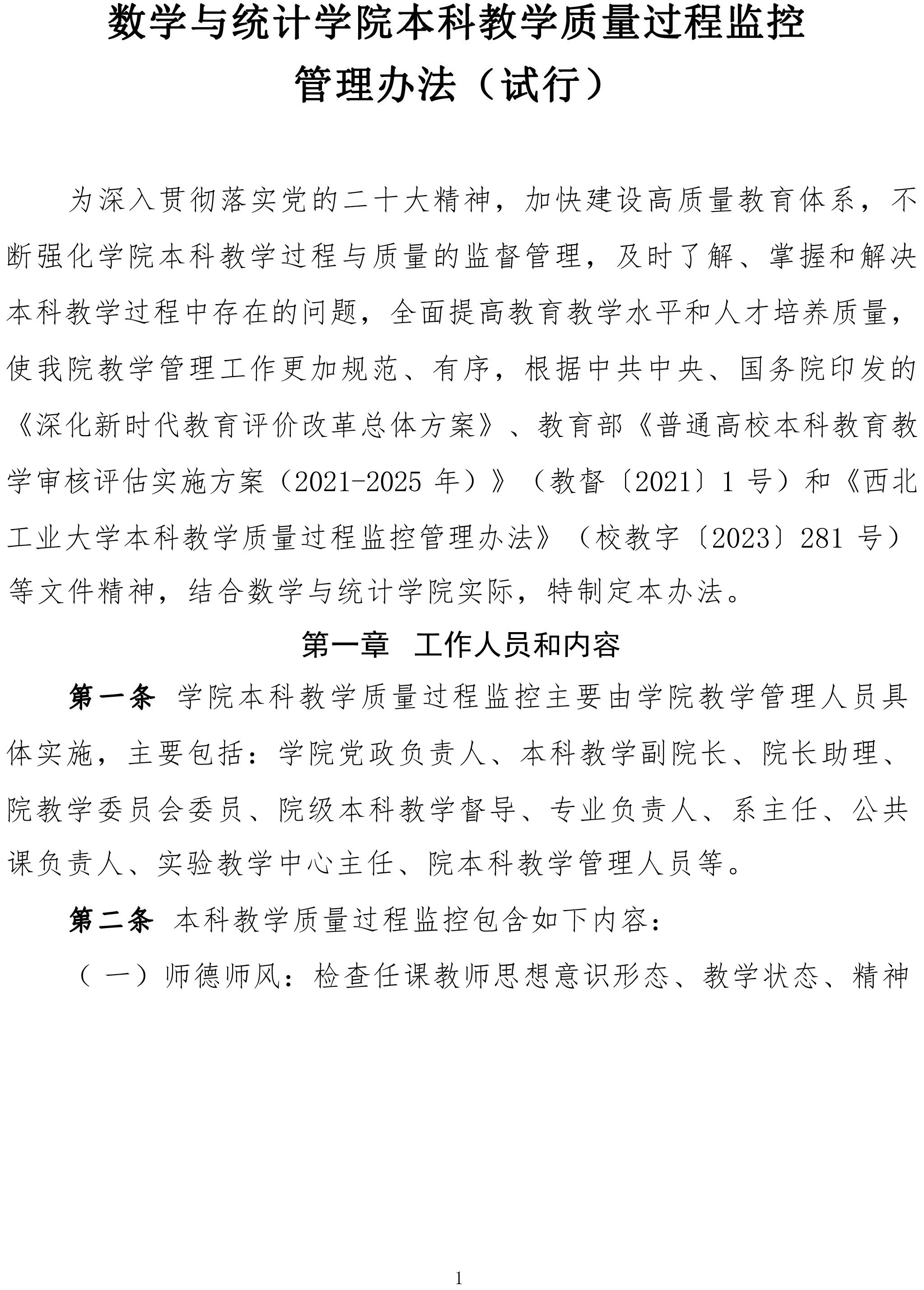 金沙娱乐场 本科教学质量过程监控管理办法(试行)